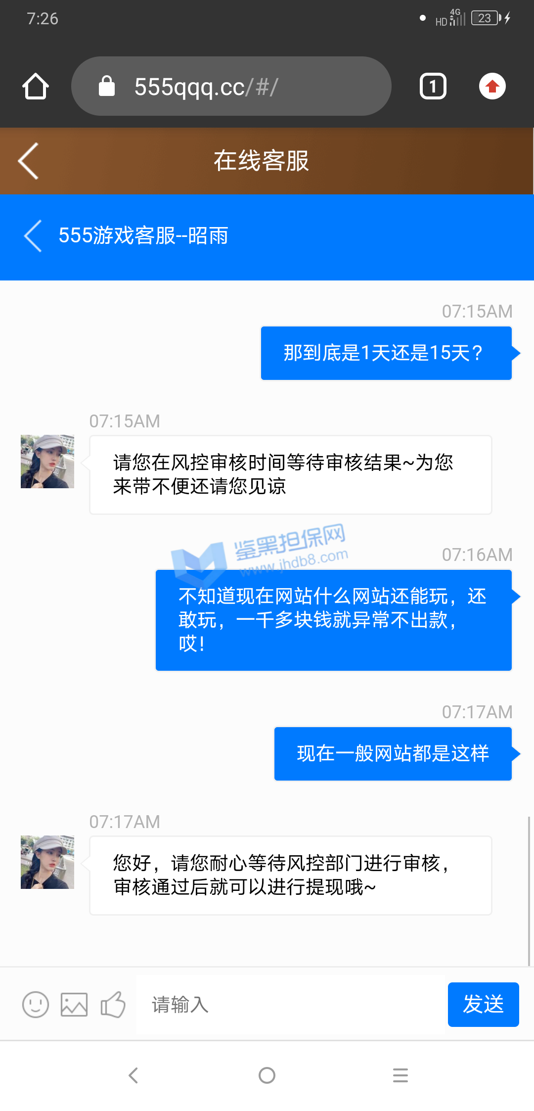 4.用户提交维权需为本人提交,若代替让人发布维权鉴黑担保网将拒绝受理;
