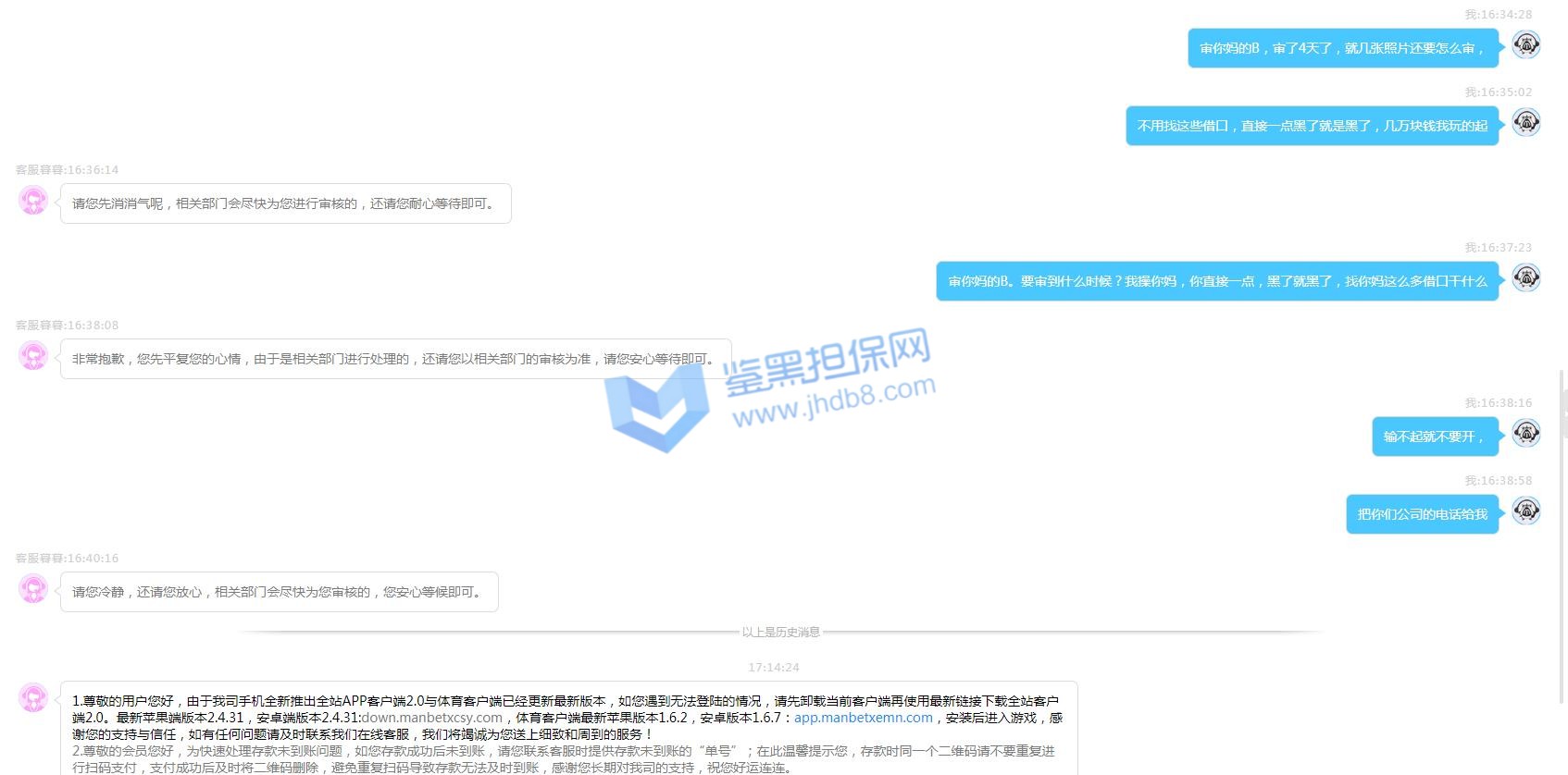 提款3868就不到账 一问说例行审核,我觉得绝对不是这么简单,一个公司稍微赢点就审核,我觉得多少有点问题,然后让提交身份证正反面、手持身份证、户口本,没有办法 虽然不愿意,但是我只能当时就立即提供了,提供后说不清晰 我继续拍,我说实在不行 要不要把社保卡什么的都发给你来证明一下自己(真是让人头疼 反正提供了户口本 翻户口本的时候看到其他东西 想想不如多给你提供一些东西 可好?),反正后来又拍了两次后 说资料合格全了,却说还要等十天(七个工作日),我就搞不懂了 你要的是审核什么,本来就是要提供的是资料 已经全了给你,也说资料全了,却还要等那么久,这就是借故拖延的一种,其实很多人接收不了审核,因为属于公司实力和底气的一种,没有办法情况下的审核可以接受,因为正规TOUZHU,但是审核效率上能不能加强呢?何况很多公司根本不谈节假日 如大公司365九州等人家不乱审核,即使处理重要问题也就是一两个工作日。 不出所料卡完审核日期 钱连本金全部被黑,无耻至极! 热博该公司多网站搞广告 曾经因为走地皇名声搞坏了 改名热博 曾经广告主打专业体育为主,该后台老板旗下还有同L城、乐T堂、bi威、竞BO 都是,现在经常审核有黑款行为,在热博存款二百 提款3868元被黑。只玩了体育 赢点就被审核,说我对打套利,我搞不懂了 如何套利 另外问违规注单,让他们提供却没有,只说违规 就一句话。 知道正常黑款公司从开始就是这个步骤 先让你提供身份资料 然后提供了 卡完审核日期(因为根本决心黑款拖完时间再说)然后就黑款。这家比之前的UC体育还无耻 UC体育黑款还能退本金 这家连本带利全部黑了。真正土庄,还有这个系统大家要注意 之前口碑还可以的几家都已经有黑款行为了,比如B威,刚开始还信誉,后来听说被海南工作室搞惨了,然后现在就一直有审核黑款情况,包括乐T堂、同L城 竞博都是如此,一样的审核套路和黑钱行为,大家都要留心。而且该系列包括热博这些公司在玩BO联合该论坛骗会员 多次搞活动,投诉贴较多,该站管理根本不管会员利益,只知道收广告费,还黑会员 大家都要明智。